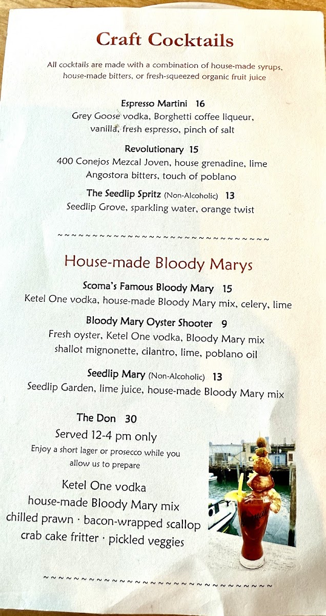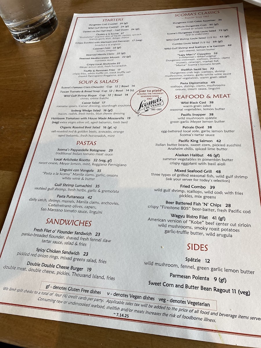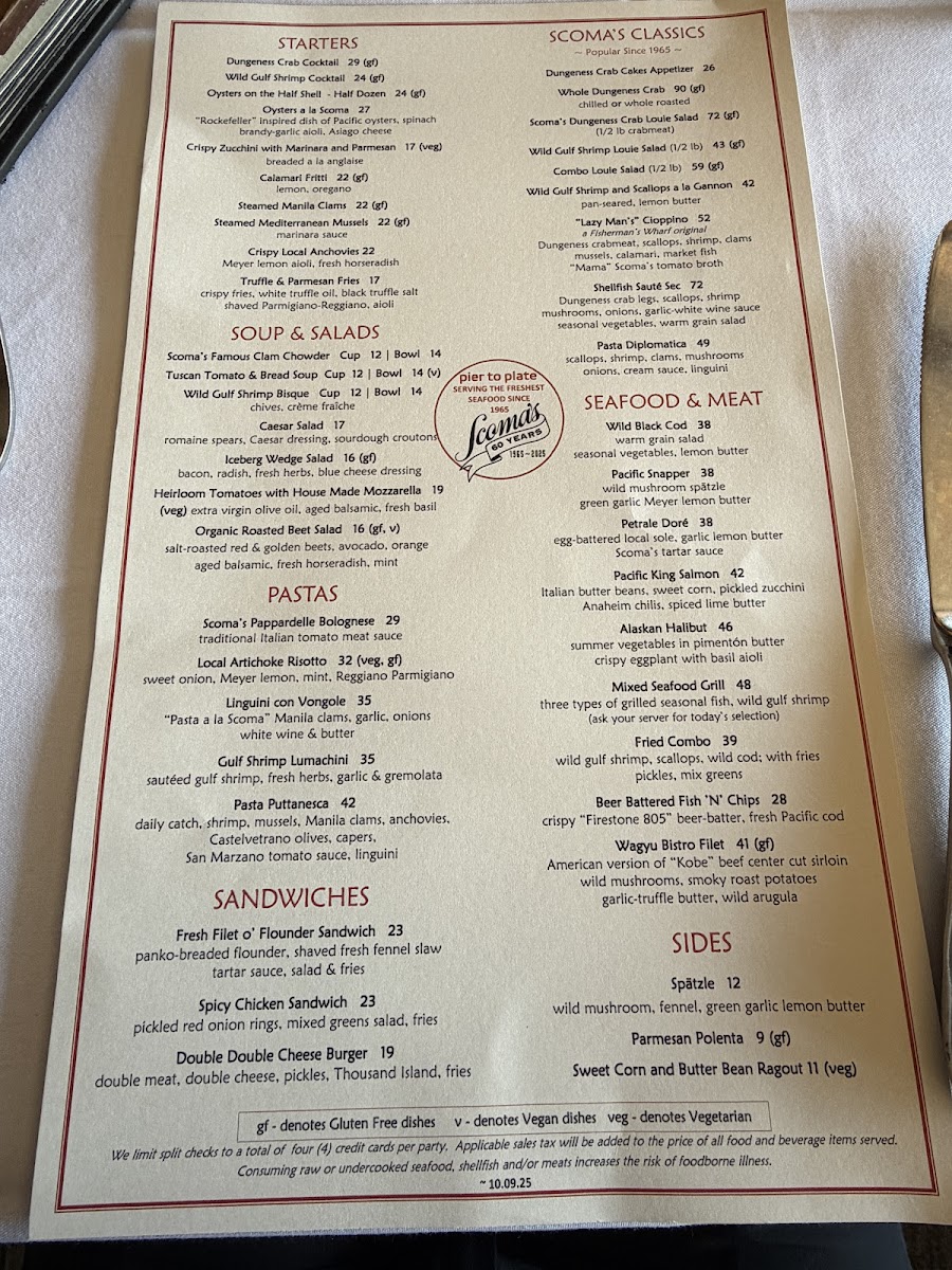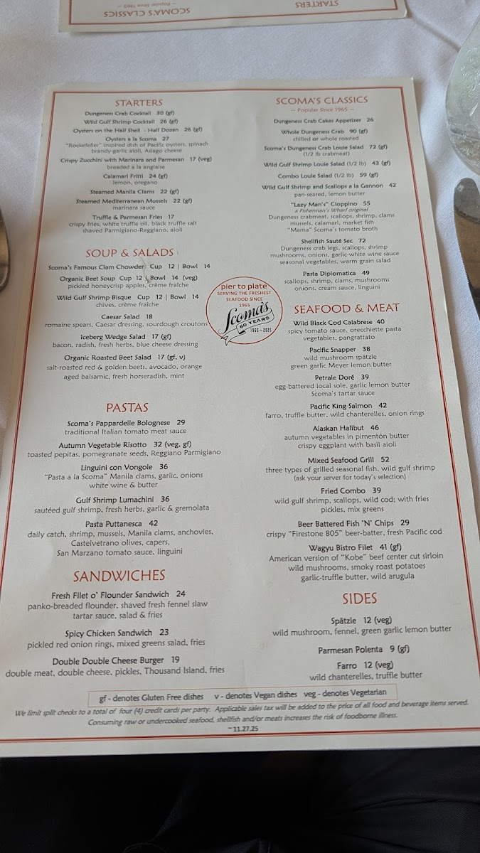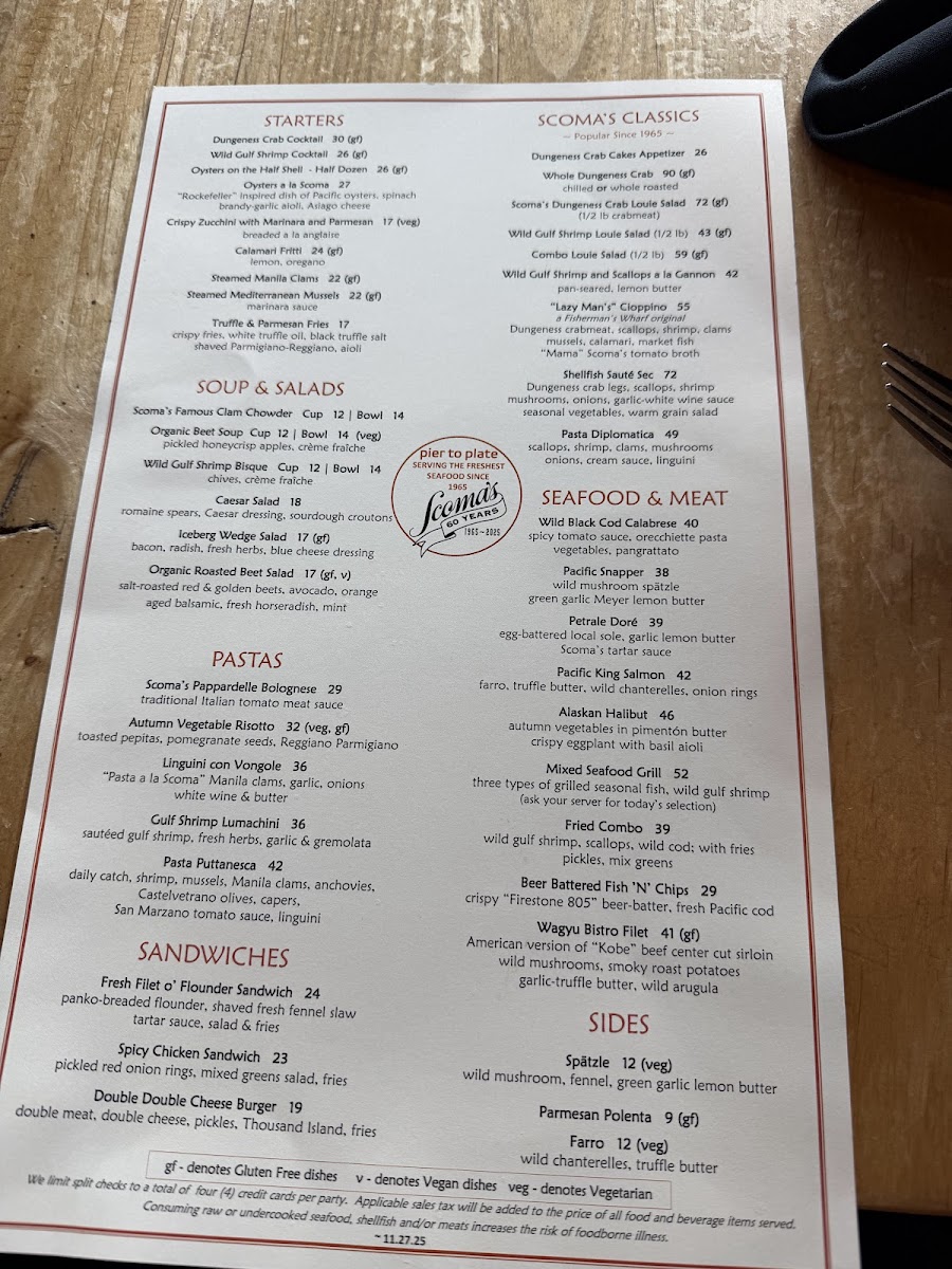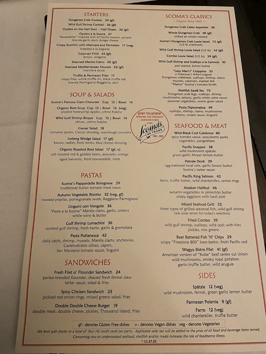 Scoma's Restaurant Menu
